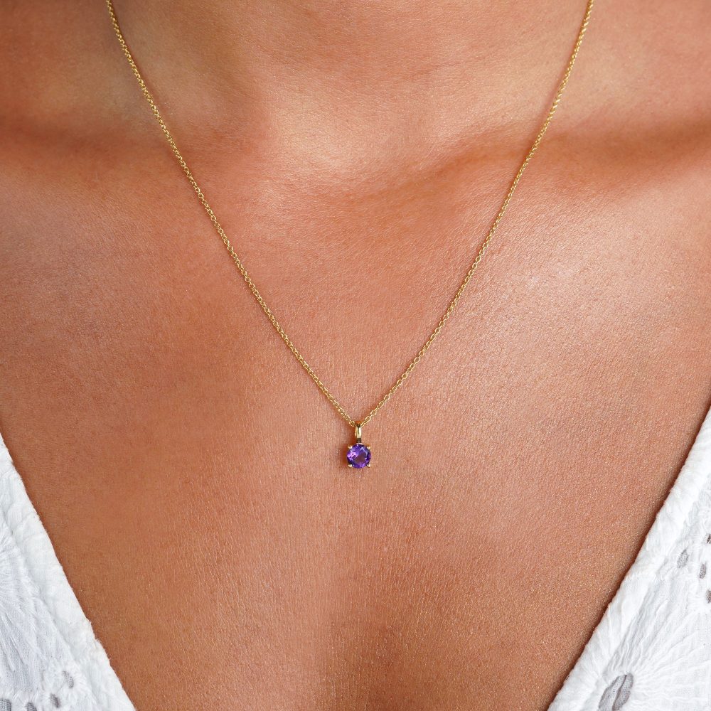 Smycke med lila kristall Ametist. Halsband med februari månadssten lila Ametist.