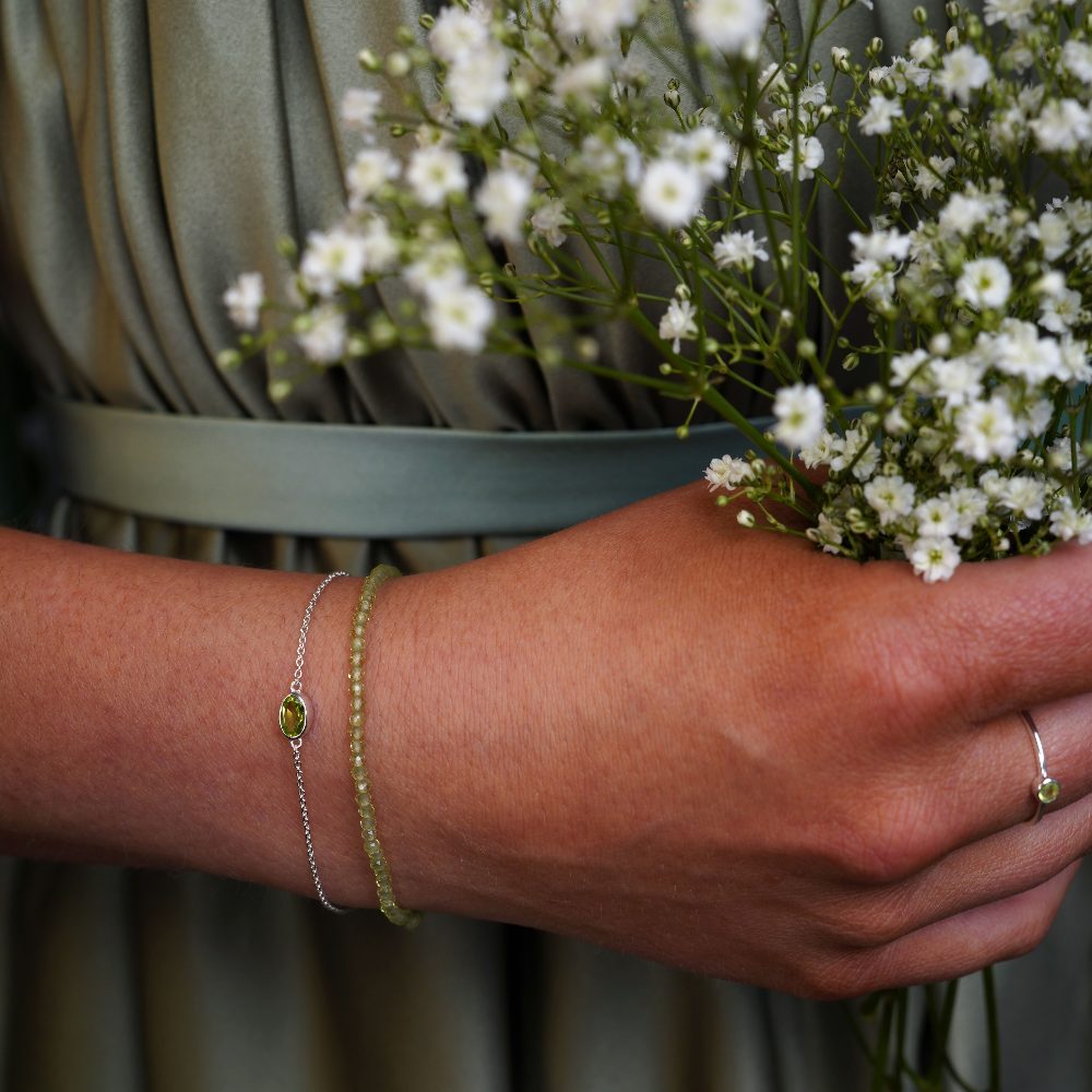 Armband Augusti Peridot i Sterling Silver 925. Alla månadsstenar har olika unika egenskaper och sägs ge extra styrka, kraft och energi till dess bärare. Din månadssten är anpassad för din energi och själsändamål. Självklart kan du bära kristaller som inte är din födelsesten - dras du till den är det rätt! Dessa smycken är perfekta att ge bort i present då kristallen är kopplad till mottagarens födelsemånad. Hitta fler smycken med Peridot.