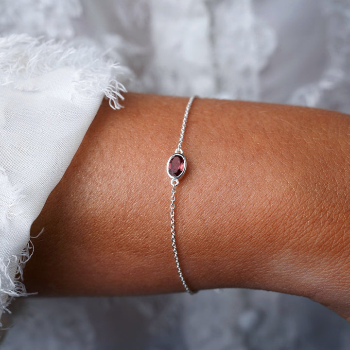 Armband med januari månadssten Granat i silver. Kristallarmband med röd kristall Granat i sterling silver.