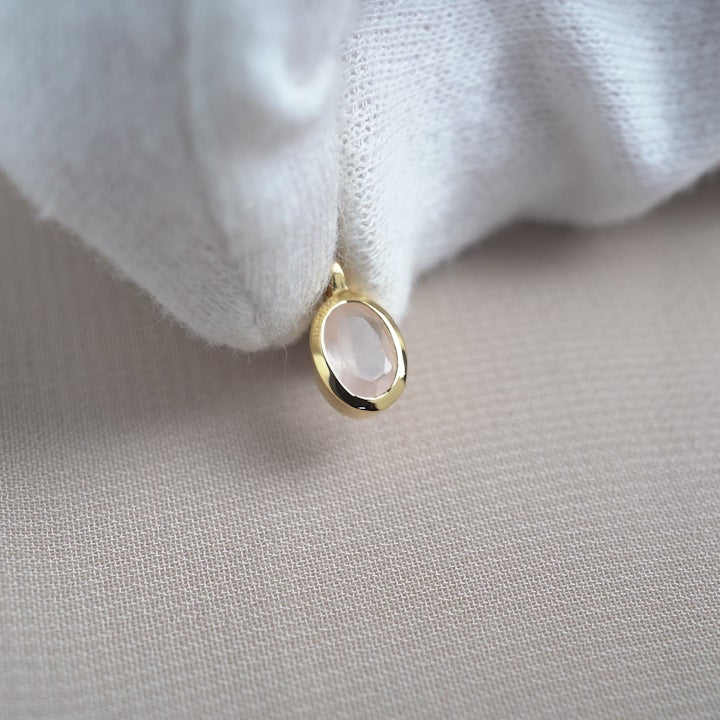 Berlock Oktober Rosenkvarts i 18k Guld Vermeil. Ett kraftigt lager av äkta guld över Sterling Silver, fritt från mässing och tungmetaller. Resultatet är ett smycke som strålar av både skönhet och högvibrerande energi. Gör ett komplett halsband genom att köpa till någon av våra guldkedjor. Alla månadsstenar har olika unika egenskaper och sägs ge extra styrka, kraft och energi till dess bärare. Din månadssten är anpassad för din energi och själsändamål. Självklart kan du bära kristaller som inte är din födelsesten - dras du till den är det rätt! Dessa smycken är perfekta att ge bort i present då kristallen är kopplad till mottagarens födelsemånad. Hitta fler smycken med Rosenkvarts här.