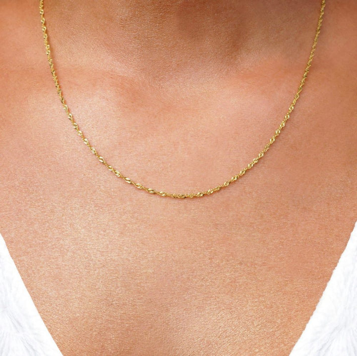 Halsbandskedja Singapore i 18k Guldplätering över Sterling silver 925 till dina kristallberlocker och hängen. Välj mellan tre olika längder. Våra guldkedjor är perfekta att bära i flera lager.