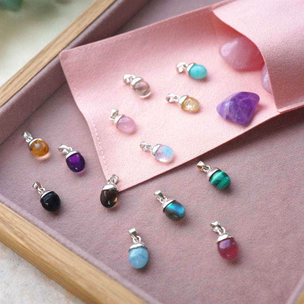Kristaller så som Onyx, Ametist, Rosenkvarts, Malakit, Granat, Bergkristall, och Amazonit har alla olika energier och vibrationer, och vi påverkas även av färgen i stenen. Det kan vara svårt att veta vilken kristall som passar bäst för dig, men det finns inga rätt eller fel. Du kan lita på din intuition och låta slumpen avgöra. Vilken dras du till? Vilken färg tycker du är vackrast? Du kan även kolla vilken kristall som är månadssten för din födelsemånad. Eller så läser du om vilka egenskaper kristallerna symboliserar. När du är inne på en produkt finner du information om varje kristall och vi hoppas detta kan hjälpa att hitta det perfekta smycket för just dig. Kristallsmycken är också en fantastisk gåva. Vi vill att du ska känna dig nöjd med ditt köp, så alla frågor och funderingar är välkomna.