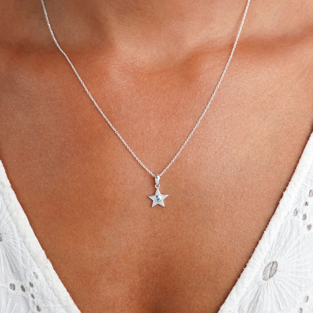 Stjärna halsband i silver och Blå Topas kristall. December månadssten halsband i silver och blå topas kristall i stjärna.