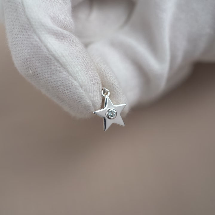 Stjärna smycke till halsband i silver och med Blå Topas kristall. Blå Topas berlock i  silver stjärna.