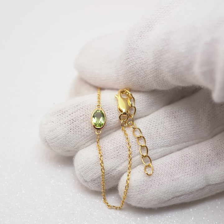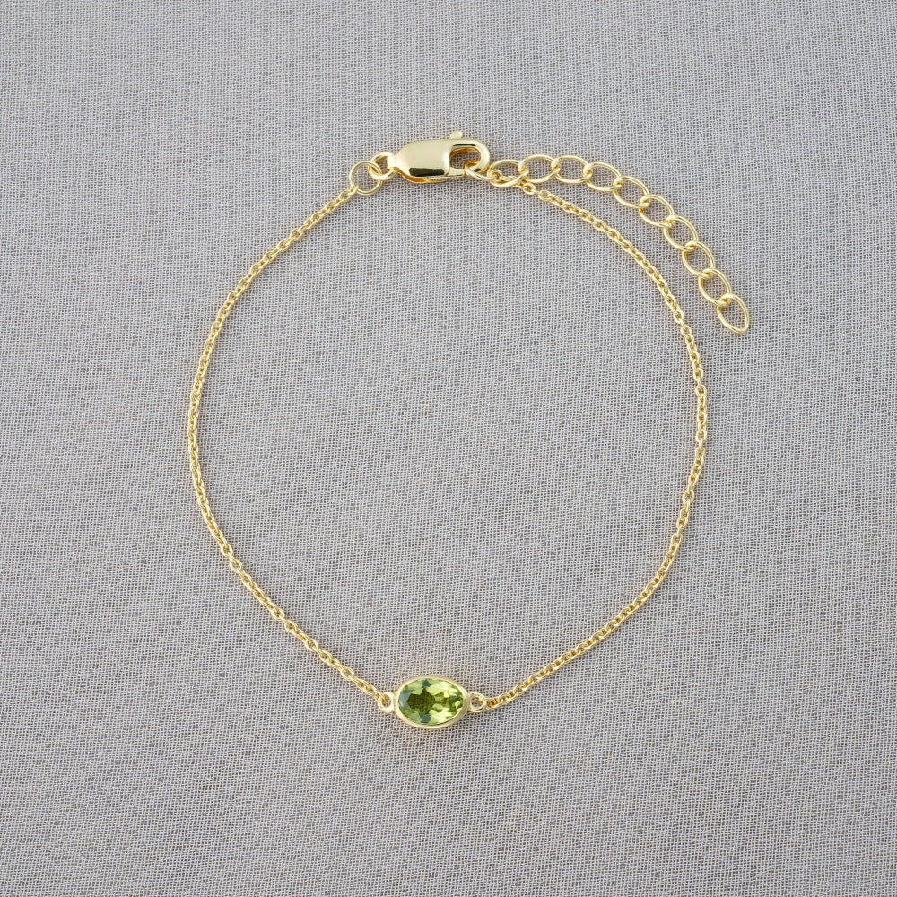 Kristallarmband med grön sten Peridot. Armband i guld med grön sten Peridot som är augusti månadssten.