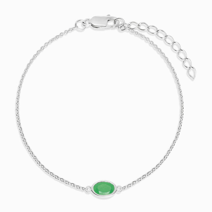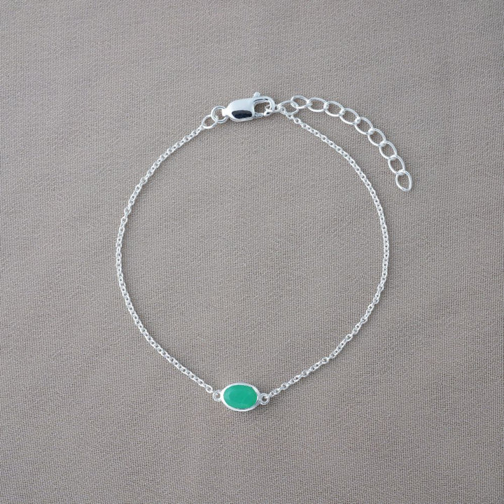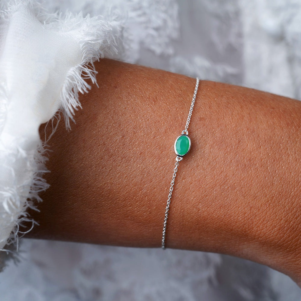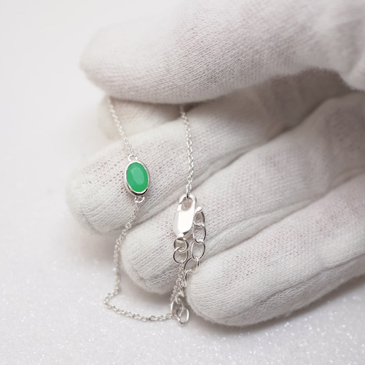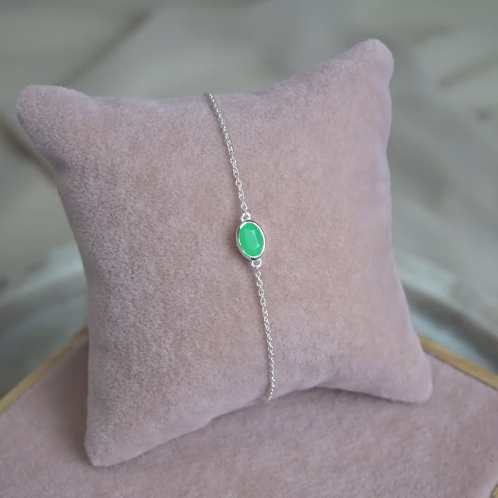 Armband med maj månadssten Krysopras i silver. Kristallarmband med äkta kristall Krysopras som har en grön färg.