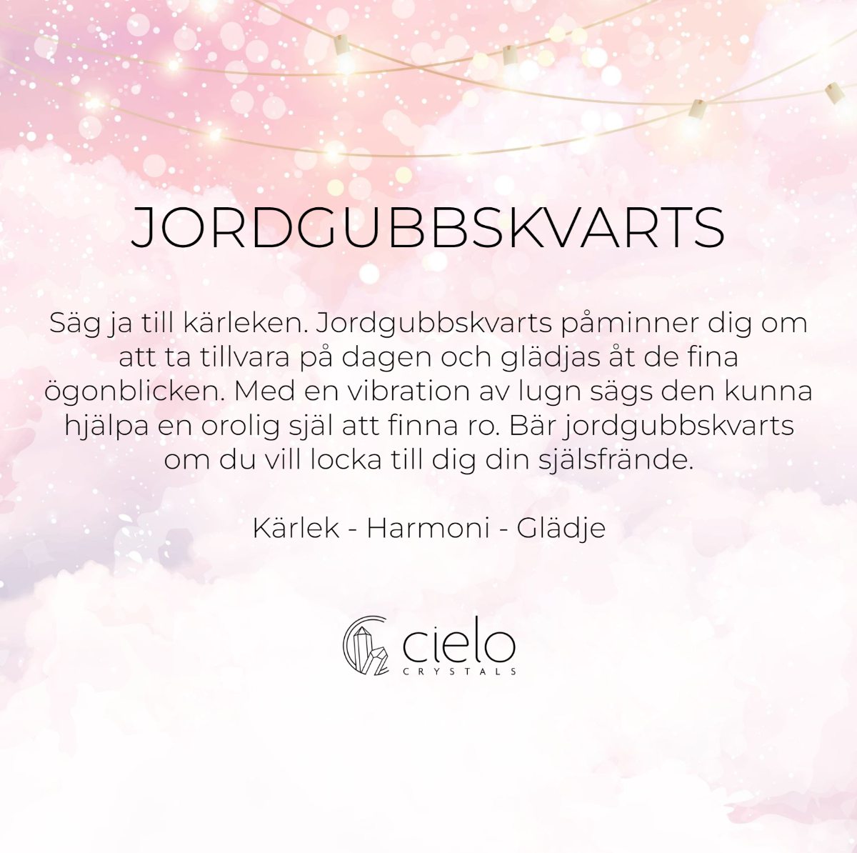 Jordgubbskvarts bär en mjuk vibration av lugn och glädje, men också ett litet pirr av kärlek. Den påminner dig om att ta tillvara på dagen och njuta av de fina ögonblicken. Bär den nära hjärtat om du vill bjuda in harmoni och värme. Den sägs kunna hjälpa dig att locka till dig din själsfrände, men också stärka banden mellan två hjärtan om du redan har hittat din.