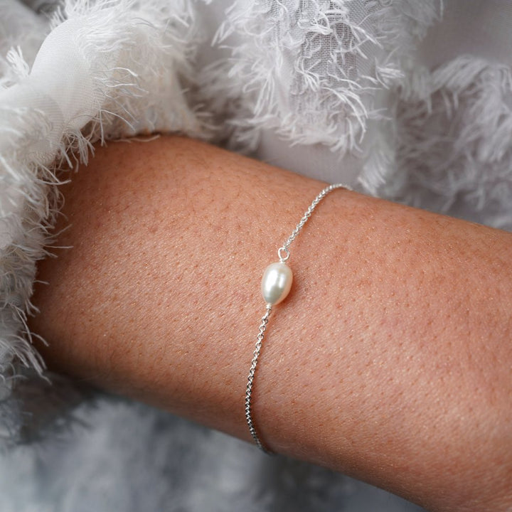 Armband med Sötvattenspärla i Sterling Silver 925. Sött och nätt pärlarmband som går att justera i storlek. Armbandet är en vacker detalj och matchar perfekt bredvid en klocka eller andra accessoarer. Stilren design som ger ett lyxigt intryck.
