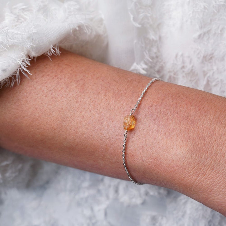 Armband med Rå Mini Citrin i Sterling Silver 925. Sött och nätt kristallarmband med liten rå kristall av Citrin. Med detta smycke bär du alltid med dig din favoritkristall.