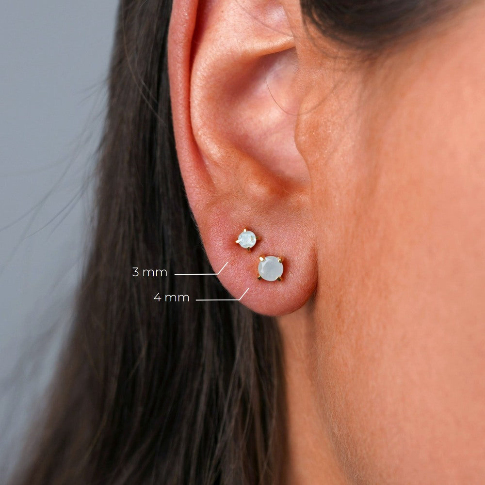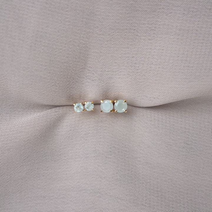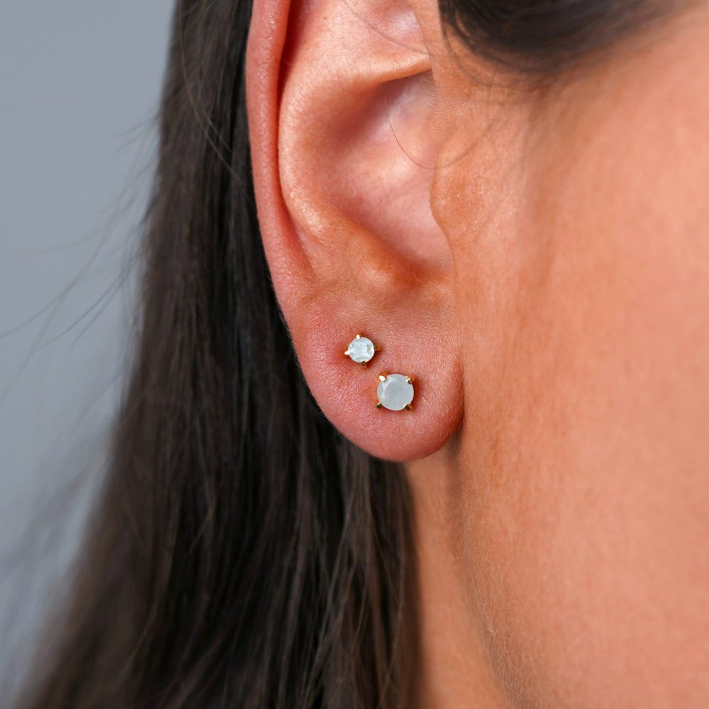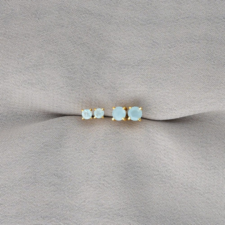 Örhängen från Cielo Crystals i form av studs i guld med äkta kristaller av akvamarin – passar både till vardags och fest.