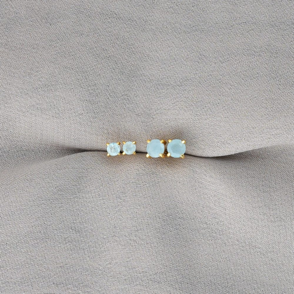 Örhängen med Akvamarin i guld. Akvamarin örhängen studs i stilren design och gulddetaljer.