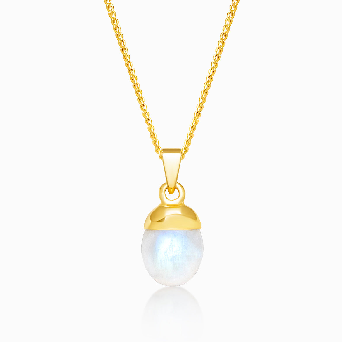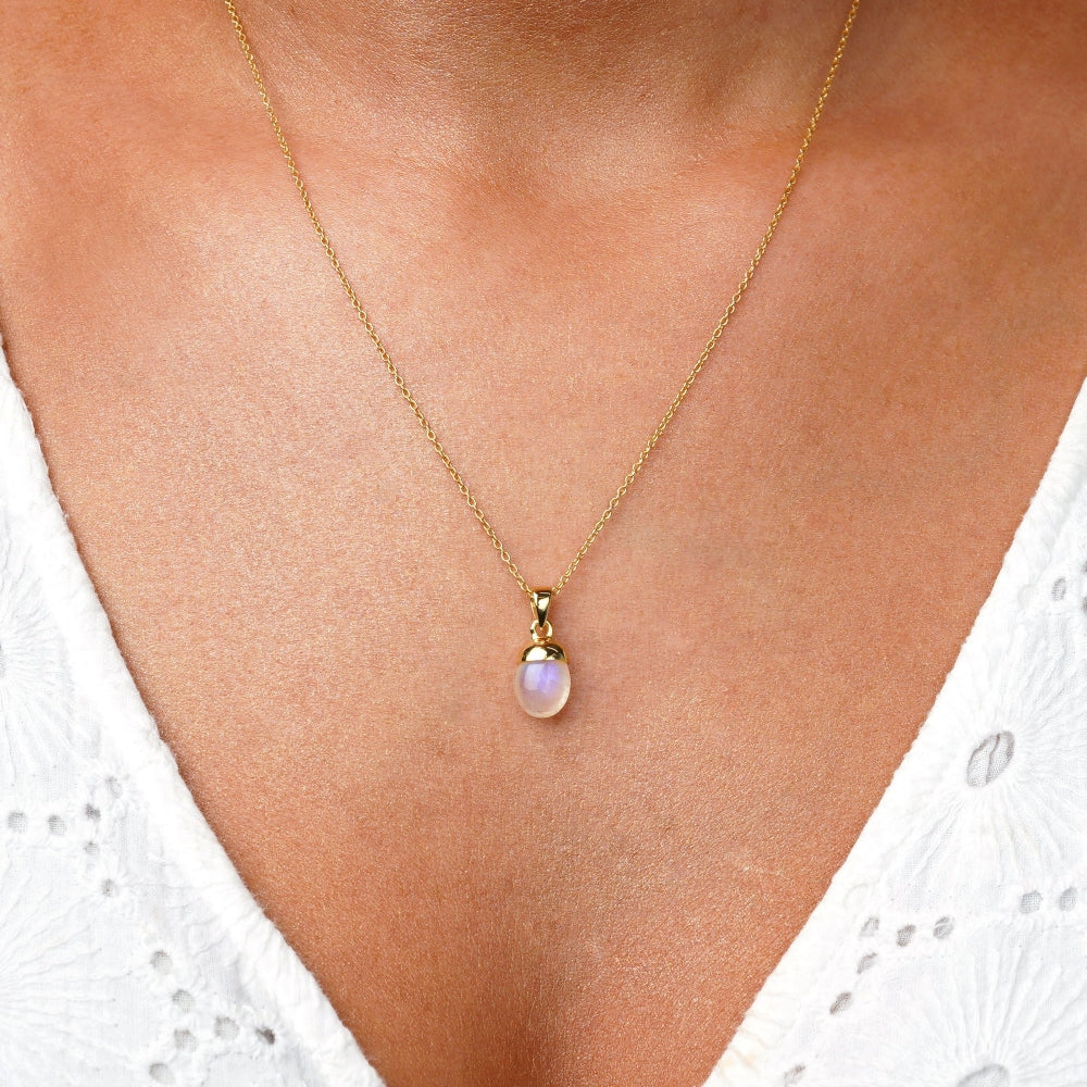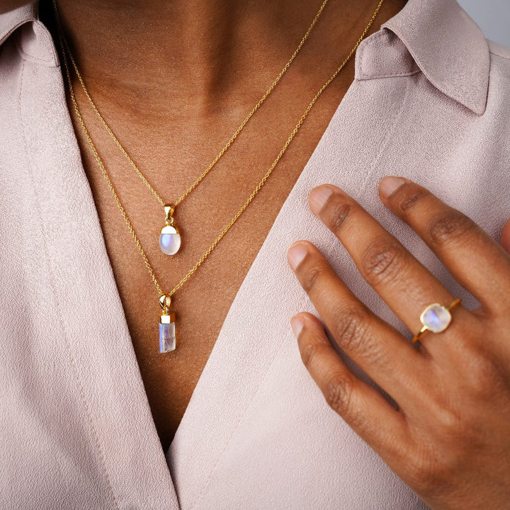 Trumlad Regnbågsmånsten i 18k Guld Vermeil. Ett kraftigt lager av äkta guld över Sterling Silver, fritt från mässing och tungmetaller. Resultatet är ett smycke som strålar av både skönhet och högvibrerande energi.