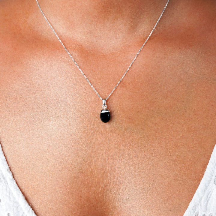 Fin och enkel kristallberlock med trumlad Onyx. Med detta smycke bär du alltid med dig din favoritkristall.